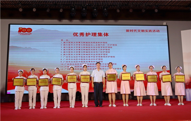 5月11日下午,广州市从化区庆祝“5‧12”国际护士节系列活动在从化荔博园举行。活动对在全区护理、公共卫生及疾病预防等工作中表现突出的优秀护理集体和先进个人进行表彰。我院6个护理集体荣获“优秀护理集体”称号,9名护士荣获“最美抗疫护士”称号,27名护士荣获“优秀护士”称号。我院党委书记李绍波、副院长钱毅等参加了活动。表...