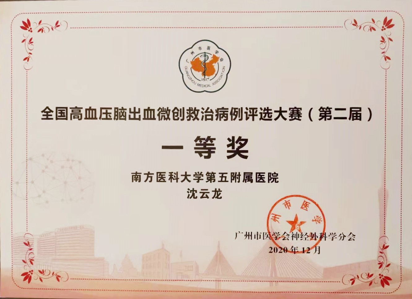 我院神经外科医生荣获全国高血压脑出血微创救治病例评选大赛一等奖