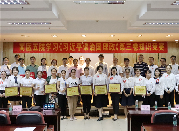 为深入学习宣传贯彻《习近平谈治国理政》第三卷和十九届五中全会精神,切实推进学习宣传往深里走、往心里走、往实里走,鼓励广大党员干部力争上游、勇挑重担,为医院改革发展贡献力量,11月19日下午,医院举办以“学思用•知信行”为主题的学习《习近平谈治国理政》第三卷知识竞赛决赛。从化区委宣传部调研员黎志平、南方医科大学党委宣传部...