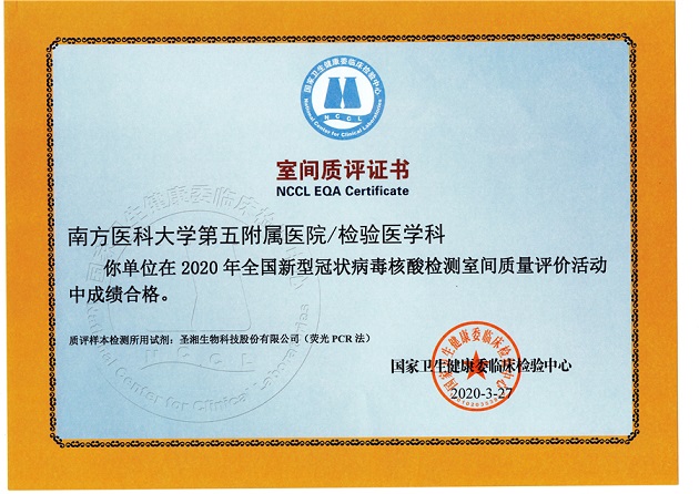 南医五院通过全国新冠病毒核酸检测室间质评