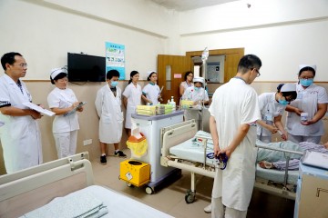 为提高广大医护人员在临床工作中遇到各类突发情况时的应急处置能力,8月27日,消化内科进行了上消化道大出血的应急演练,医务科副科长冯建威、护理部黄瑜玲护士长到场指导。 此次演练设定一名36岁患者,因呕血、头晕3小时于14:00入院为演练对象。消化内科护士长邹杏坚宣布演练开始,医生邓瑞华介绍了病人基本情况。15:0...
