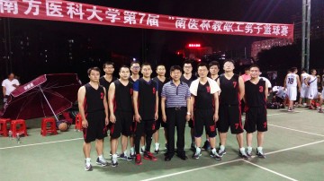 2015年10月24日—30日南医五院参加了南方医科大学举办的第七届“南医杯”男子篮球赛,本届比赛得到了医院领导的高度重视,院长邹小明、党委书记柴克生均亲临赛场指导、观看比赛。经过全体队员的顽强拼搏,取得了第三名的好成绩。 南医五院以B组第二的成绩打进了半决赛,10月29日下午与A组第一的珠江医院展开角逐...