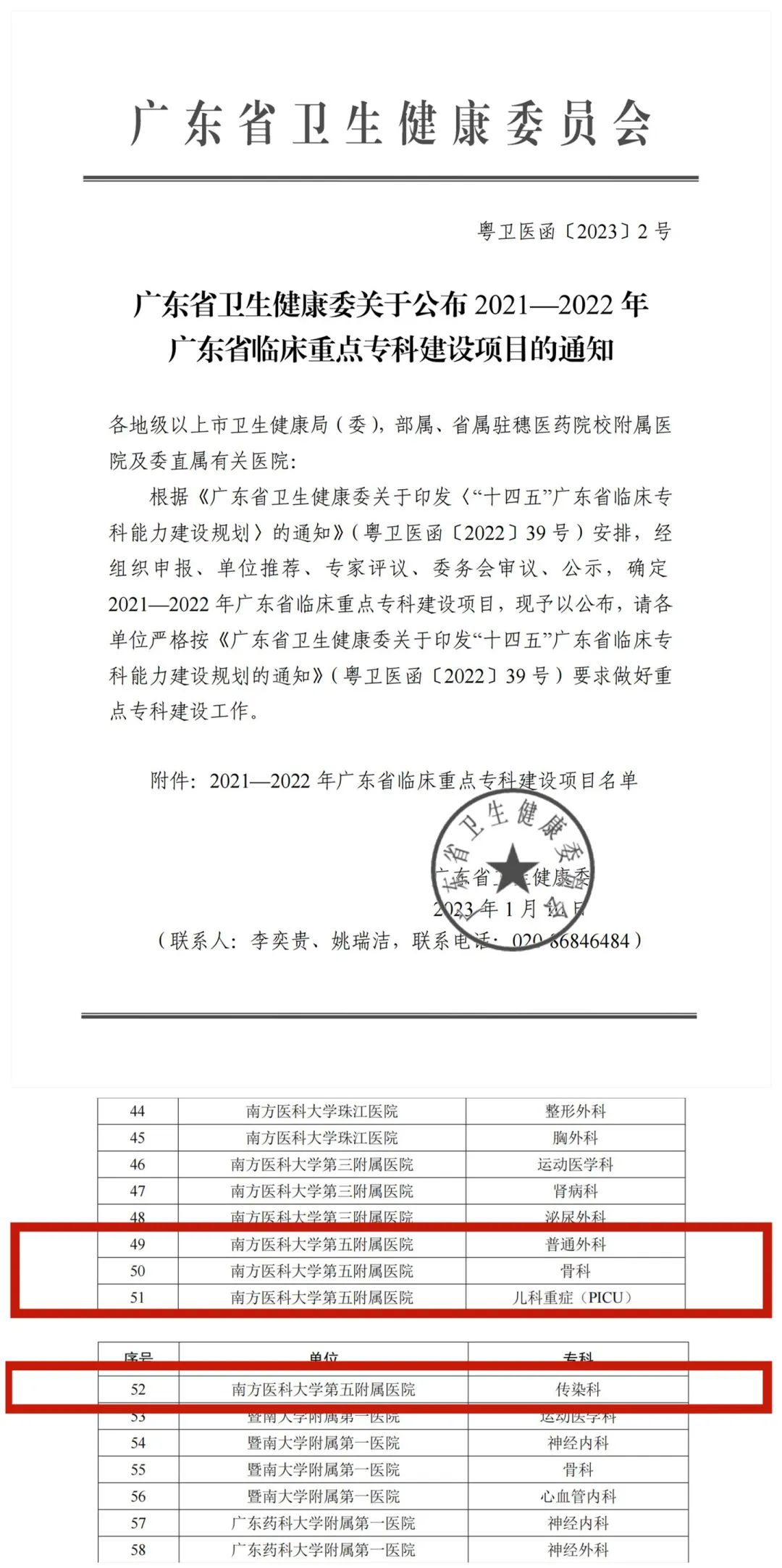 零突破!刷新院史!南医五院9个科室入选“广东省临床重点专科!”