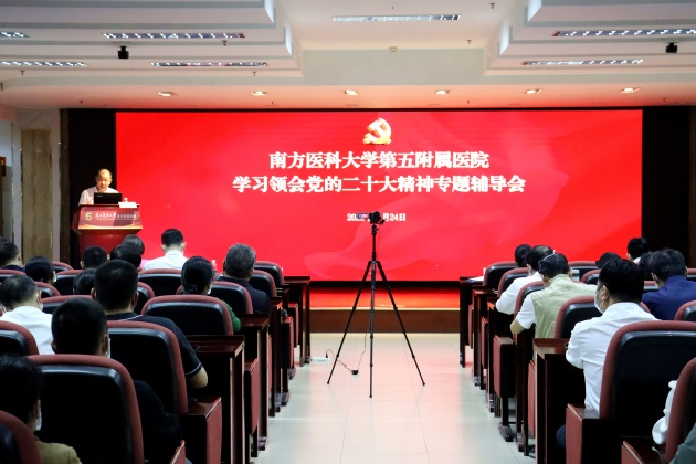 11月24日下午,南方医科大学第五附属医院按照医院学习宣传贯彻党的二十大精神总体工作方案,特邀广东省委教育工委宣讲团成员、南方医科大学马克思主义学院院长任映红作专题辅导,医院领导、各党支部书记、支部委员、科室主任、护士长、党员代表参加,党委书记李绍波主持报告会。 学习领会党的二十大精神宣讲辅导会现场 任映红...