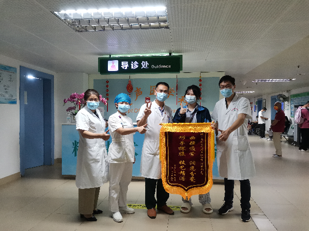“感谢邱建民主任的救命之恩,我明天就可以出院了”。近日,收治在南方医科大学第五附属医院肝胆外科的患者小晴(化名),在肝胆外科张志医生的陪同下兴高采烈地来到超声医学科,激动地把一幅锦旗送给超声医学科邱建民主任。 ...